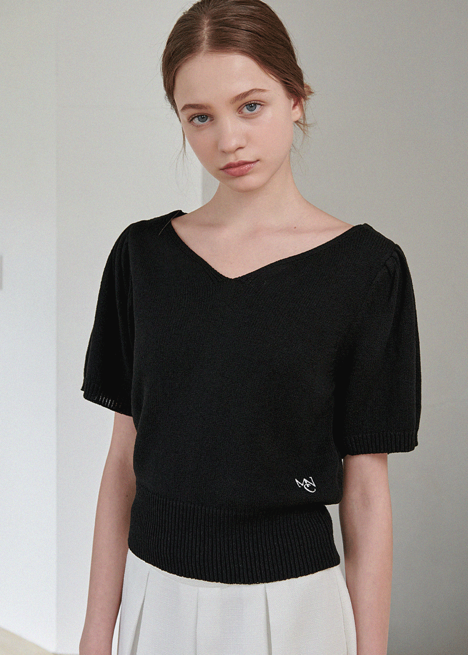 [44-120] Bloom Heart neck Knit 블룸 하트넥 니트 (여름-데일리룩-출근룩-하객룩-격식룩-오피스룩-고급-니트-반팔-하트넥-세미크롭-빅사이즈-자체제작)