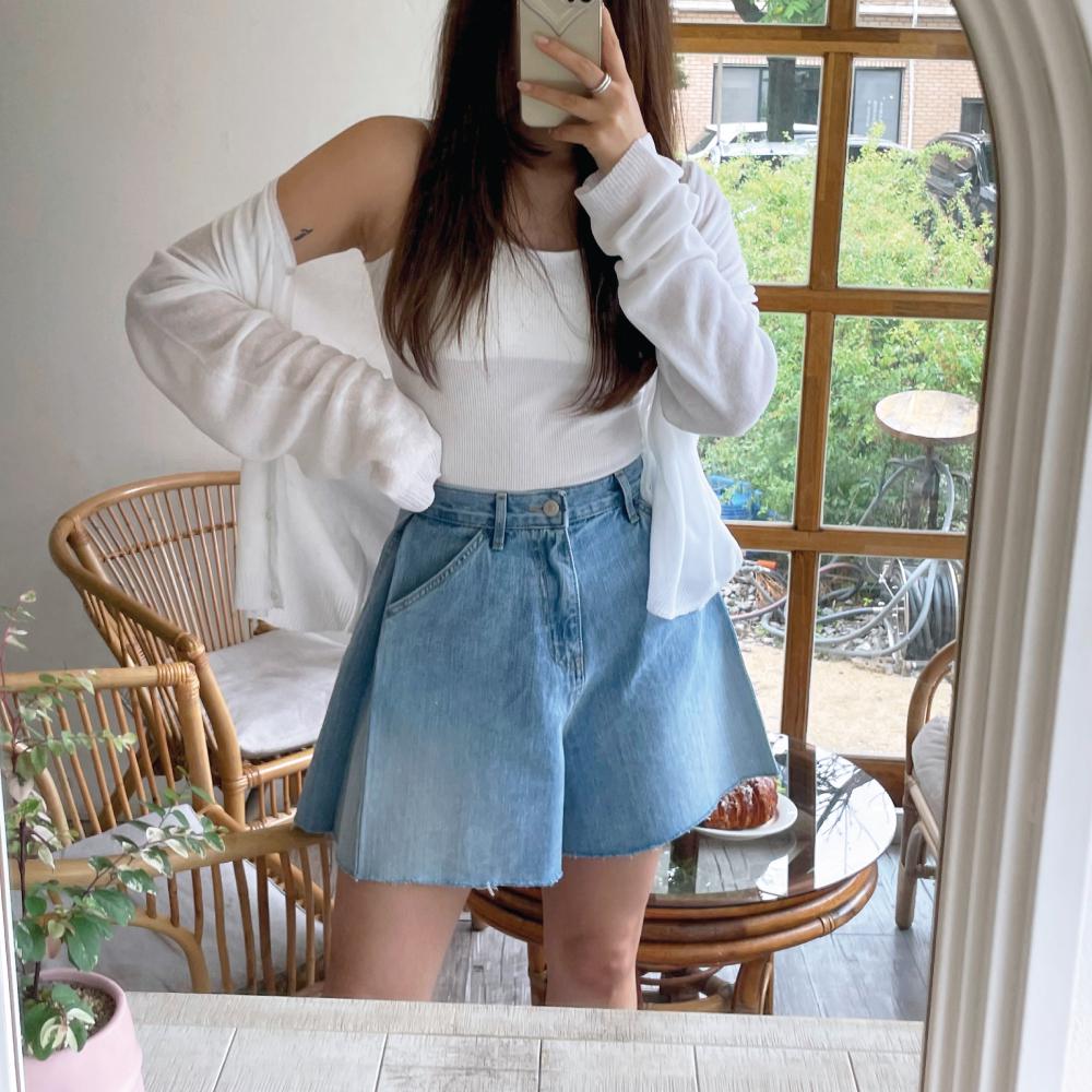 포트 핀턱 청 반바지 ( A라인 쿨데님 사이드핀턱 반바지 )