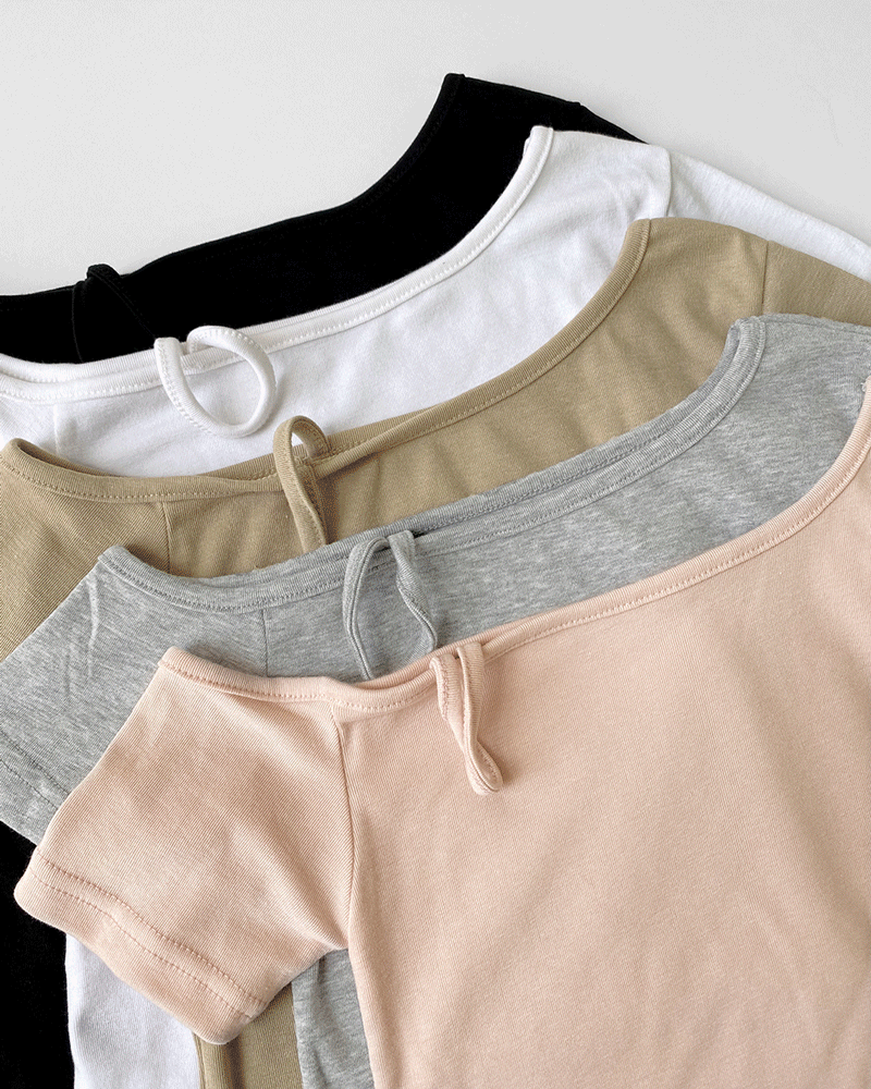뉴초 원 오프숄더 끈 크롭 반팔 티셔츠