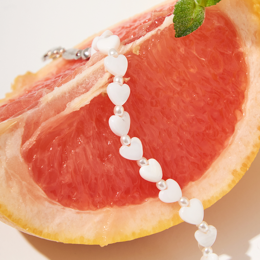 마더 오브 펄 하트 브레이슬릿🤍 / 화이트자개 천연석 팔찌