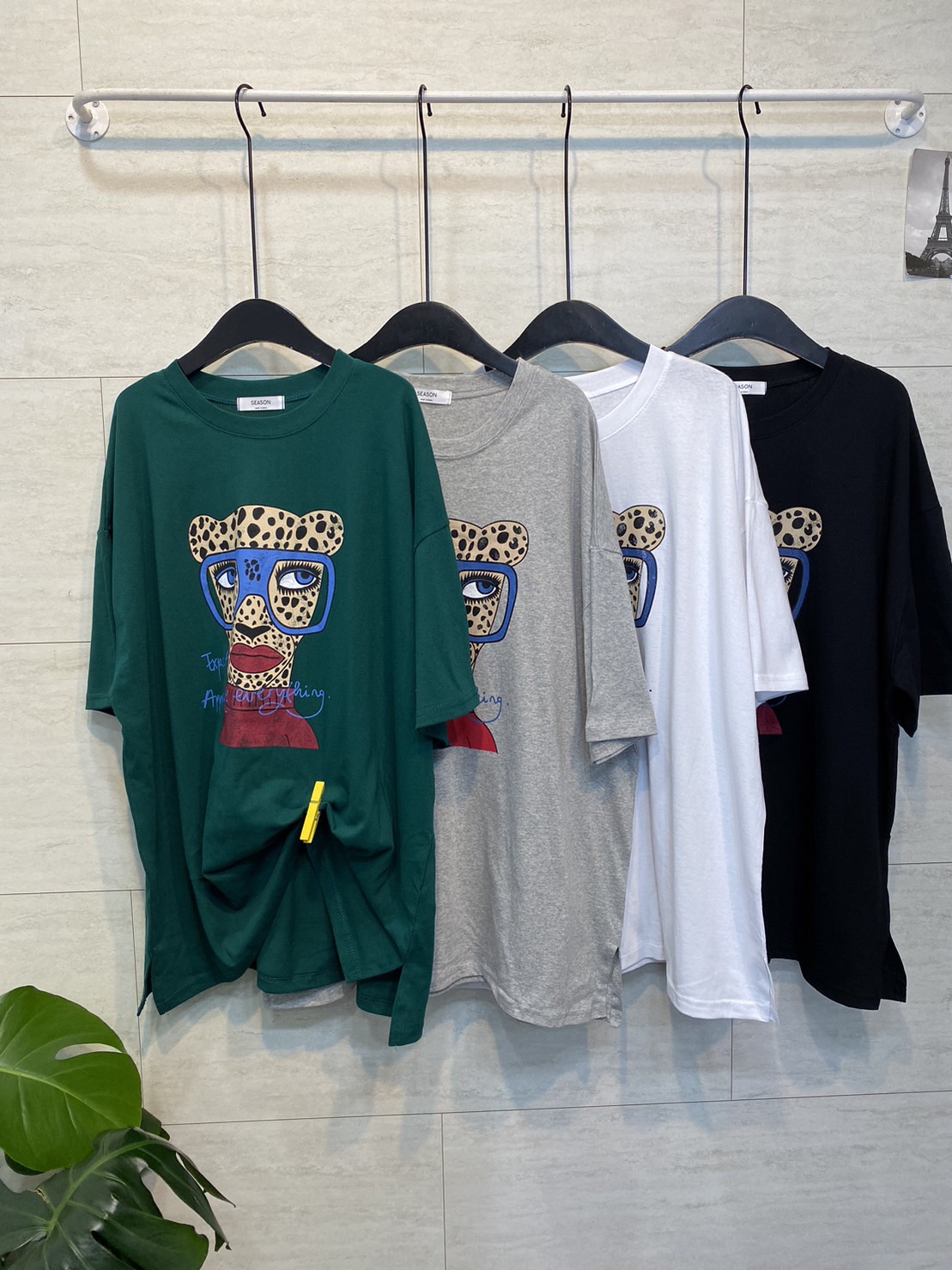 여름 오버핏 치타 캐릭터 유니크 티셔츠