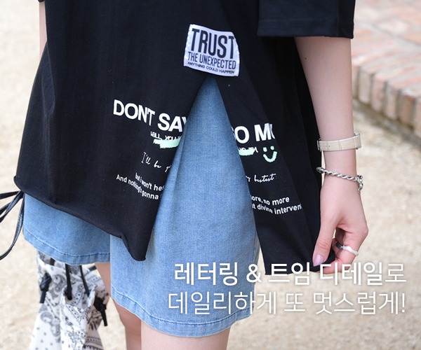 아이템 박스 레터링 트임 반팔 롱티셔츠