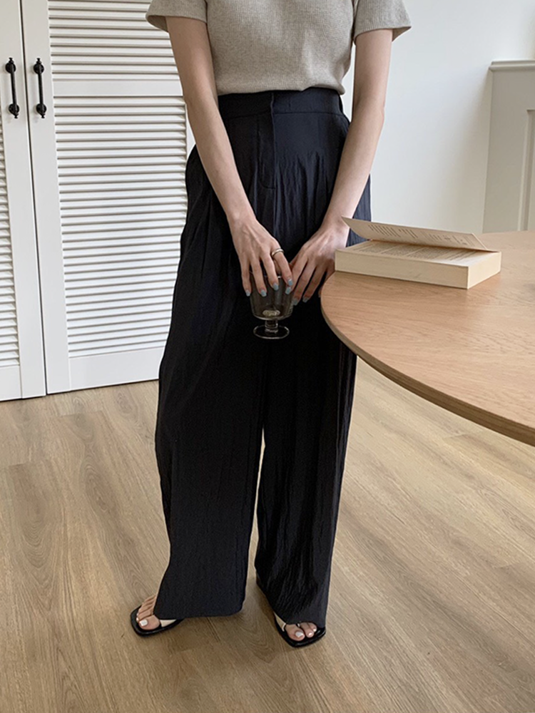sale 하이웨스트 밴딩 나일론 바스락 와이드 팬츠 바지 바캉스룩/휴가룩/캐주얼룩/여름신상