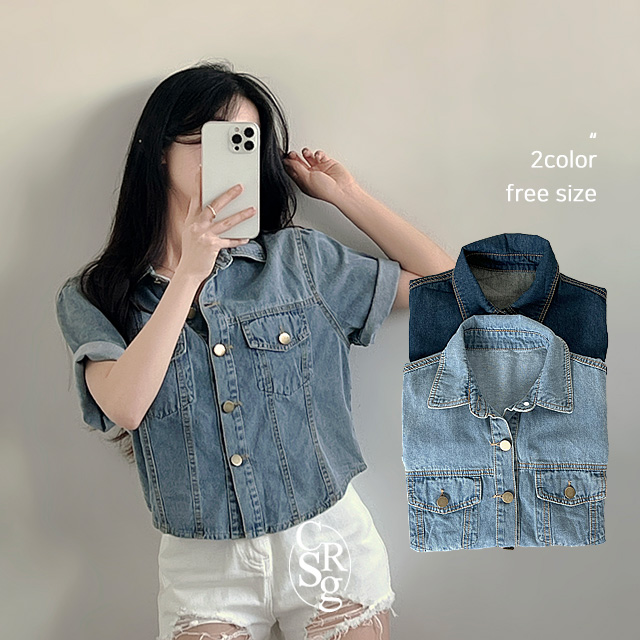 [꾸안꾸/데일리룩] 투포켓 크롭 반팔 청자켓 셔츠