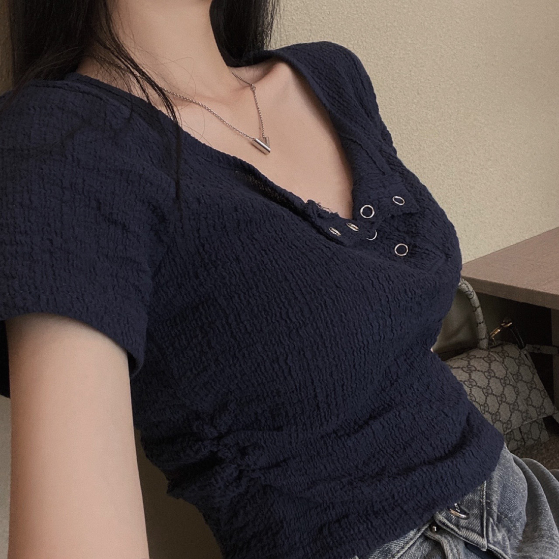 [✨원가이하 ✨당일출고!] (made) 자체제작 #크치Made 겹치지 않도록, 링클 셔링 반팔 블라우스 크롭티 - t