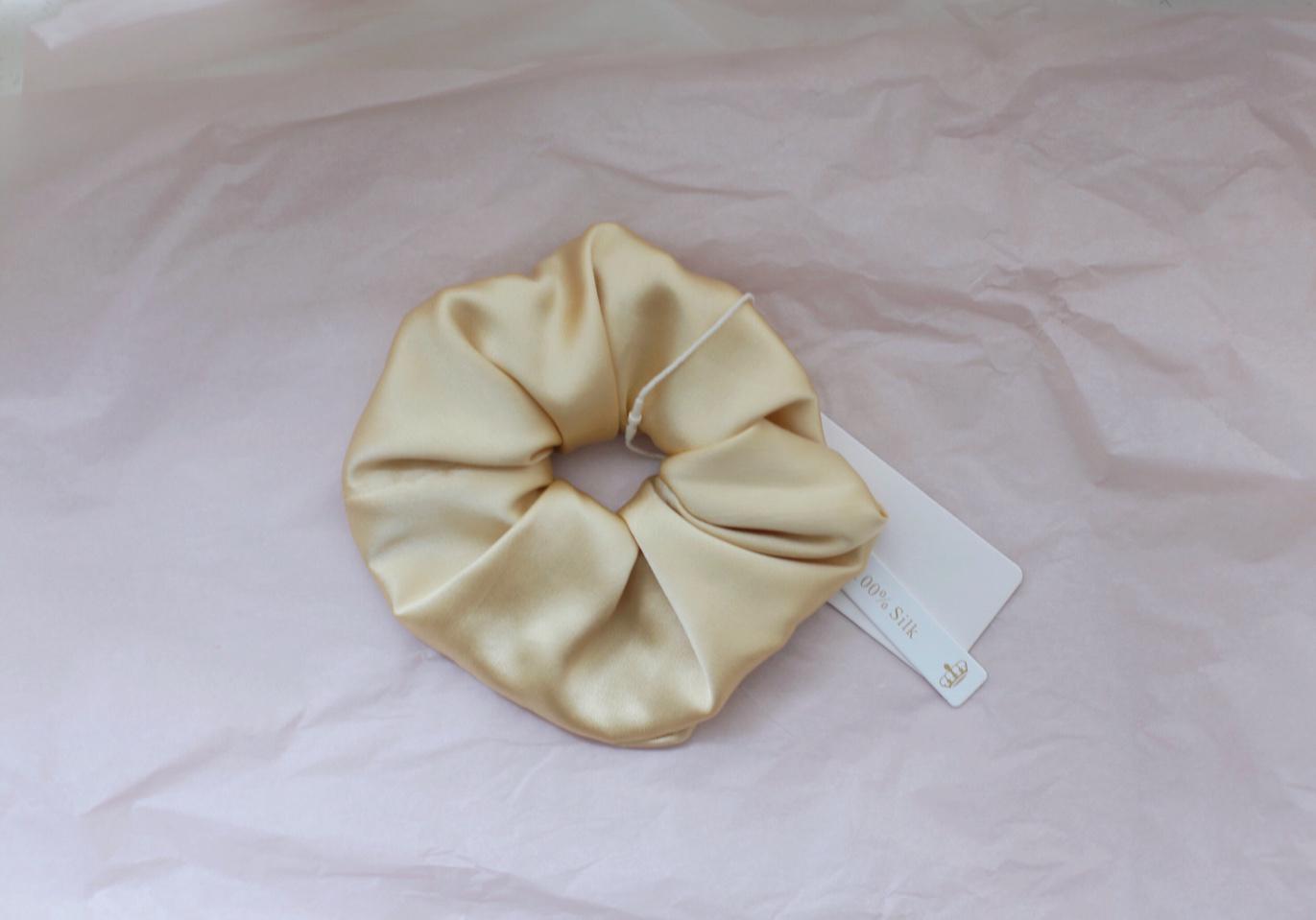순수 천연실크 100% 스크런치 머리끈 곱창 슈슈 (그린티 베이지 샴페인골드 크림 블랙)