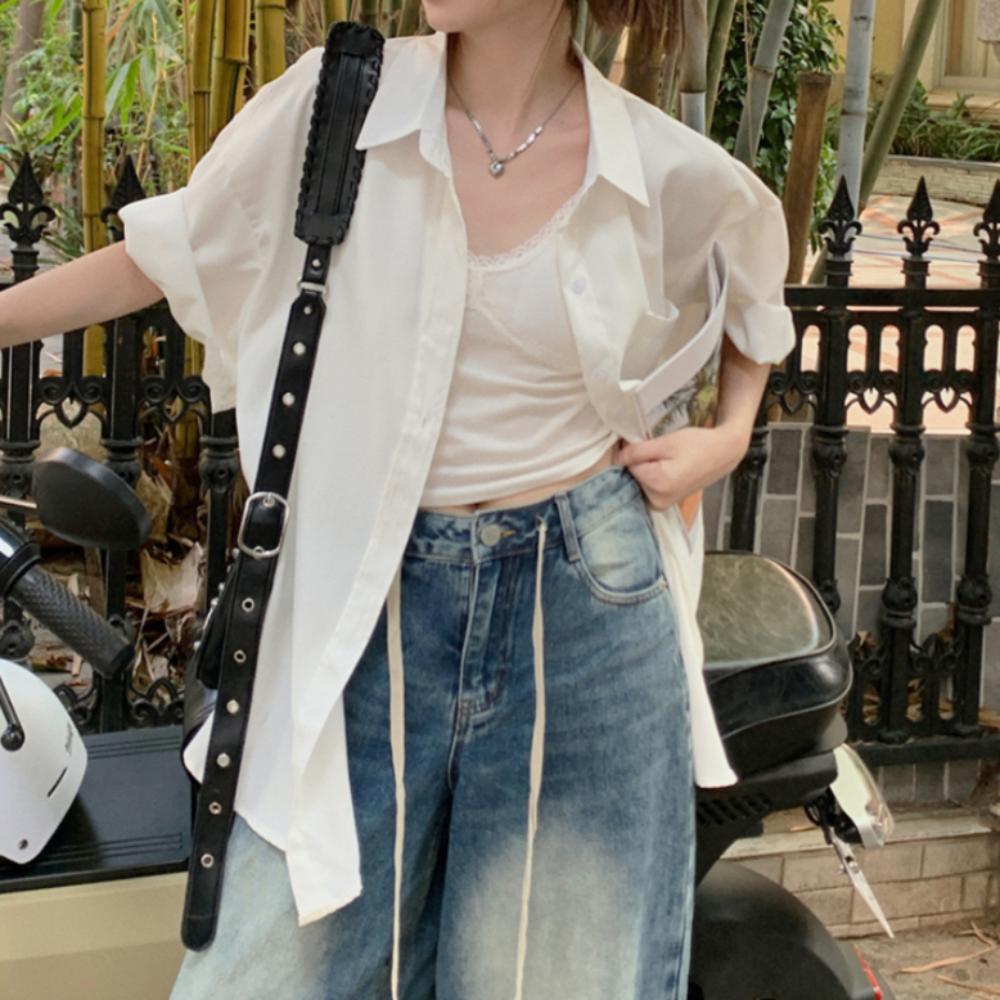 루즈핏 반팔 흰남방 셔츠형블라우스 핑크 남방 여름롱남방 흰색블라우스 흰블라우스 5컬러