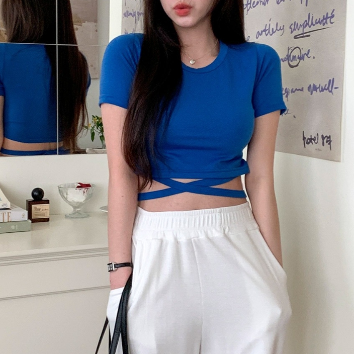 [워터밤상의/ 페스티벌룩] 흠뻑쇼 코디 옷 파란색 크롭티 워터밤룩 드레스코드 레이스업 축제룩