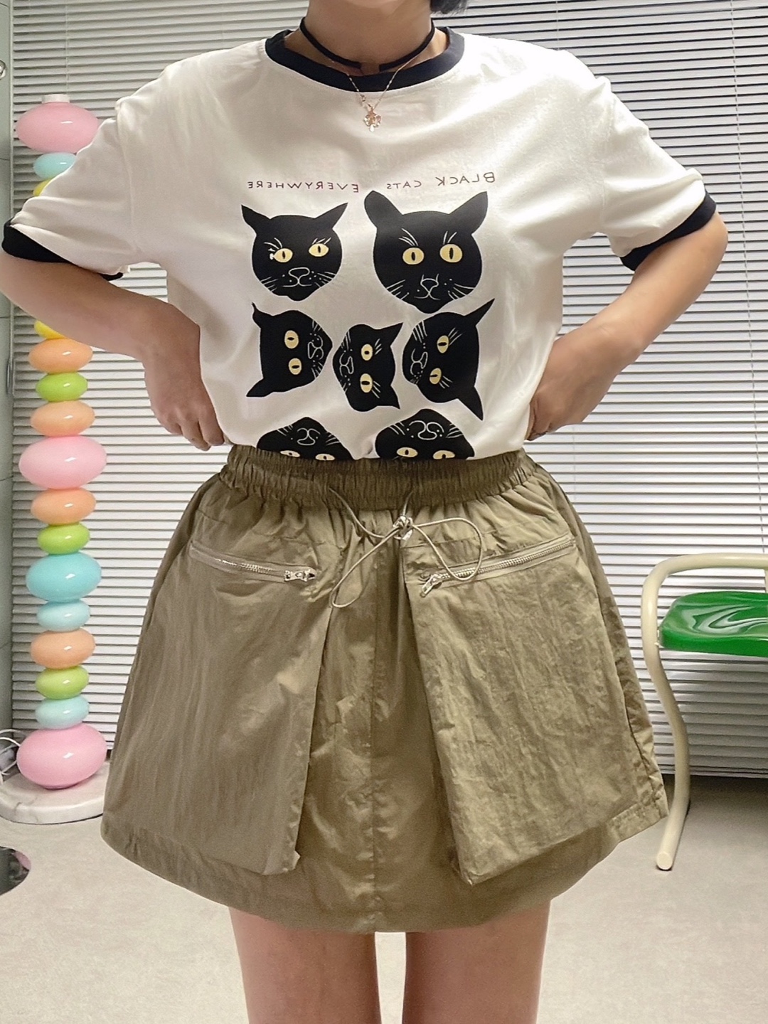 [빅사이즈]나일론 카고치마 지퍼 포켓 스트링 바스락 밴딩 속바지 미니스커트 치마바지
