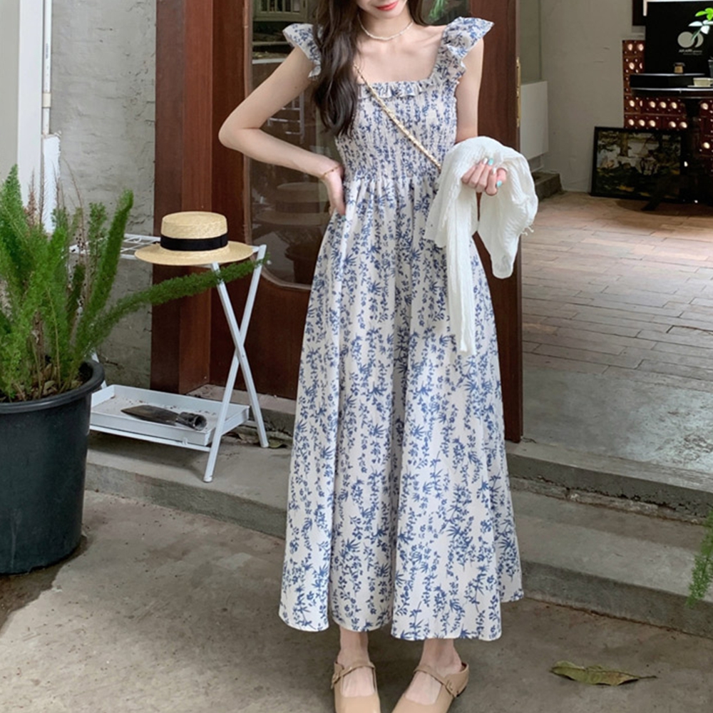 잔꽃 원피스 스모크 휴가 바캉스 여름 롱 나시