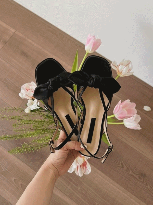 [금장선택] 마리렌 리본 새틴 버클 스트랩 발편한 쿠션 샌들 힐