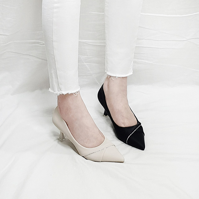로카 사선 튤립라인 큐빅장식 스틸레토 펌프스 힐 7cm