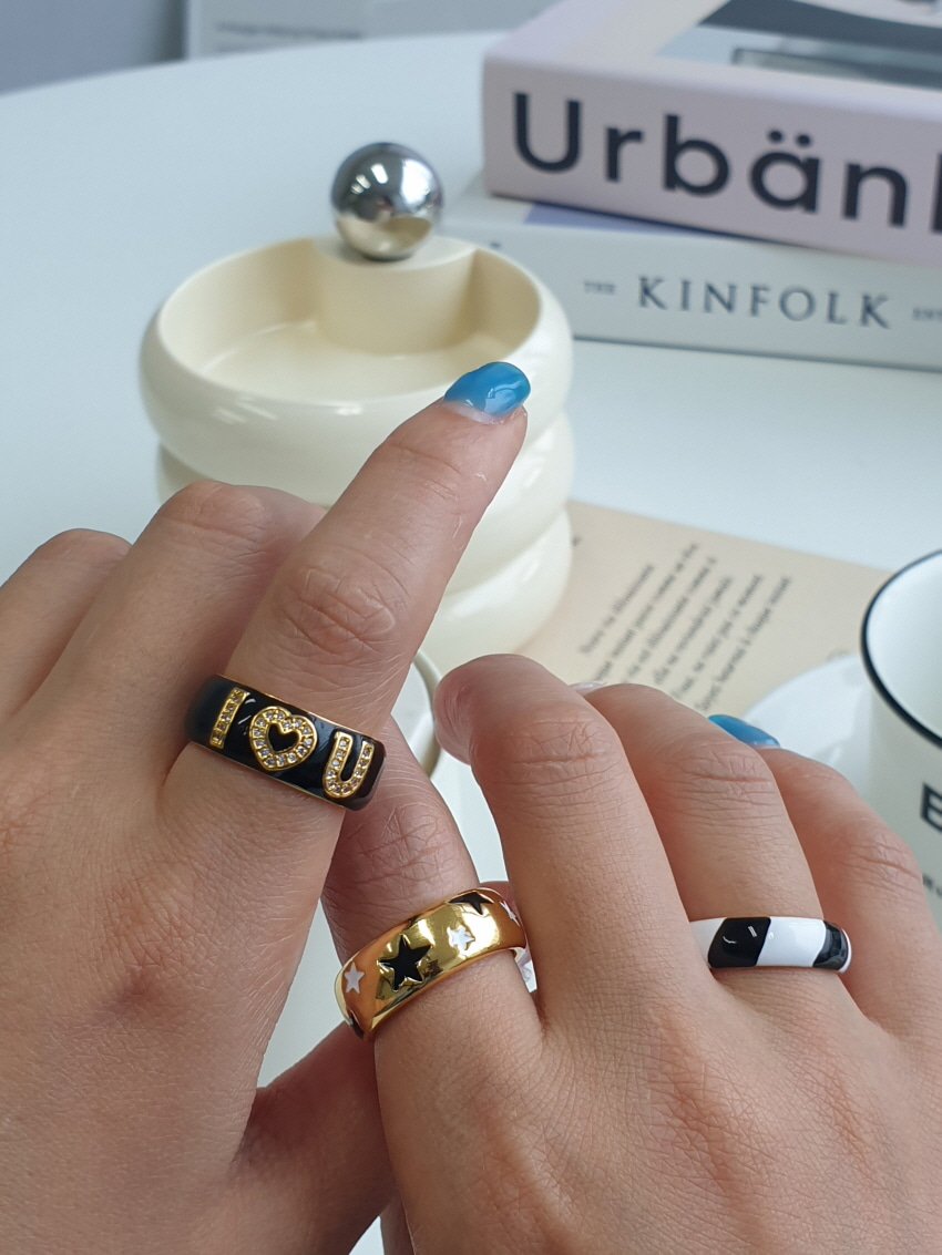 I ♡ YOU / 별 / 스트라이프 링 반지