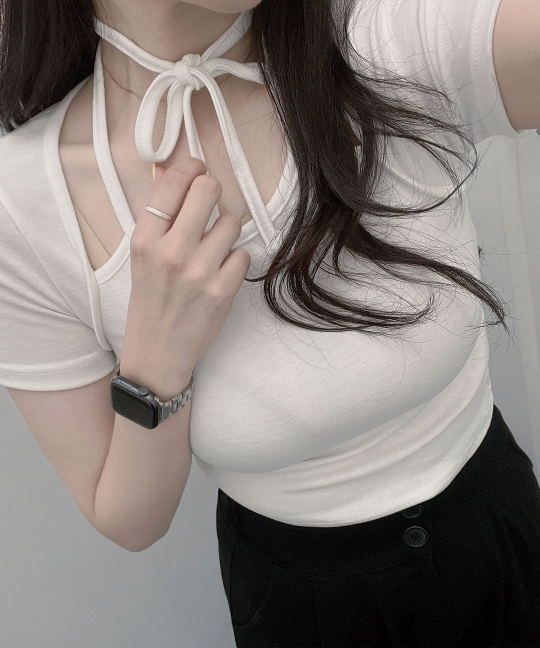 데일리 엘리스 퍼피 초커 짱짱 여름 세미크롭 반팔 티셔츠