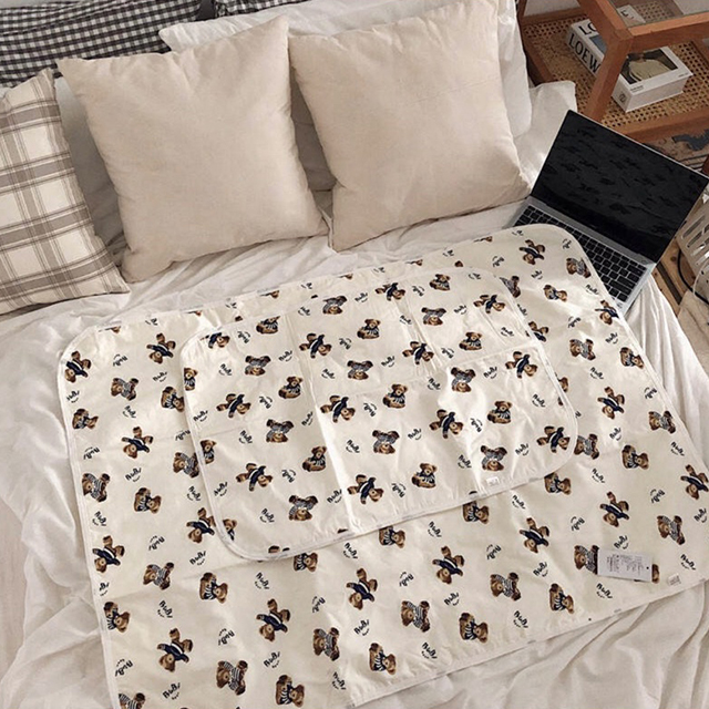 곰돌이패턴 생리 수면 방수 패드 기능성 순면 담요 방석 4size