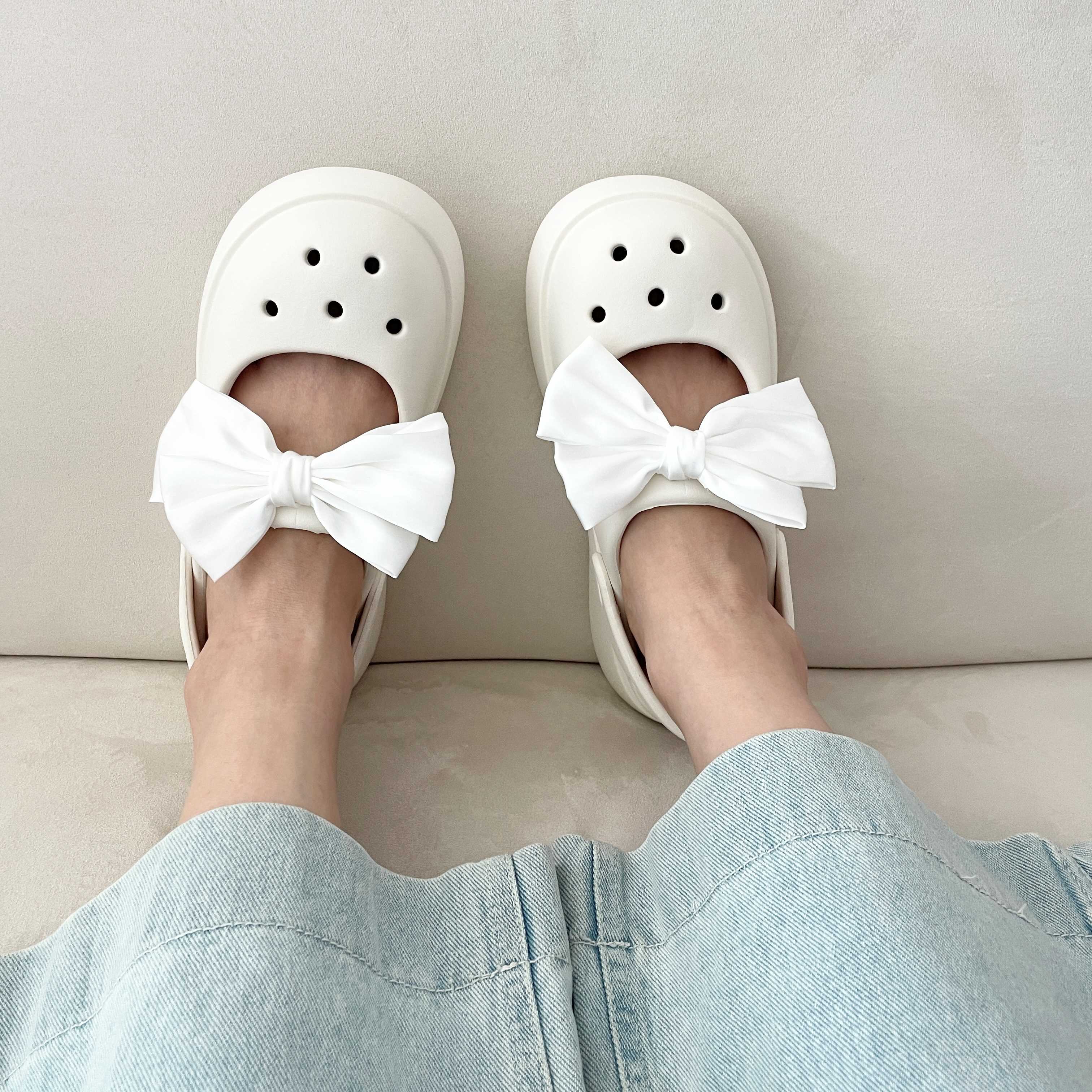 [당일출고] 2p 왕리본 크록 지비츠 신발 실내화 장식 파츠