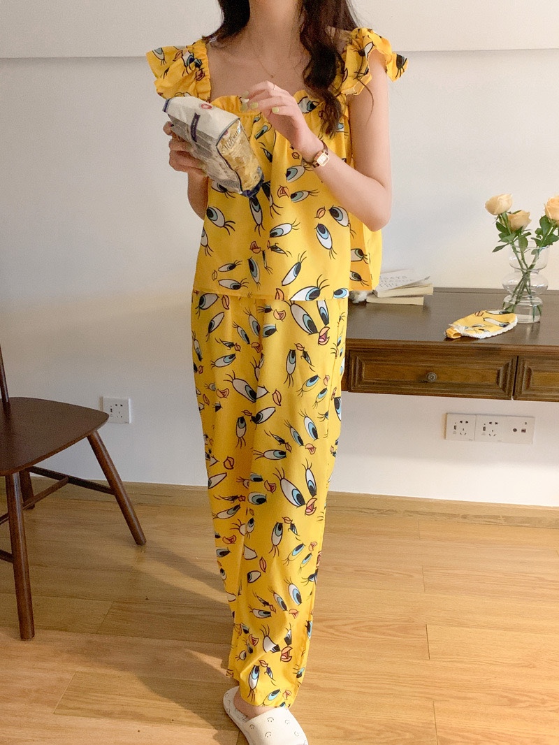 노랑귀요미 오링링 프릴 날개 잠옷 상하세트 파자마 선물 홈웨어 2type