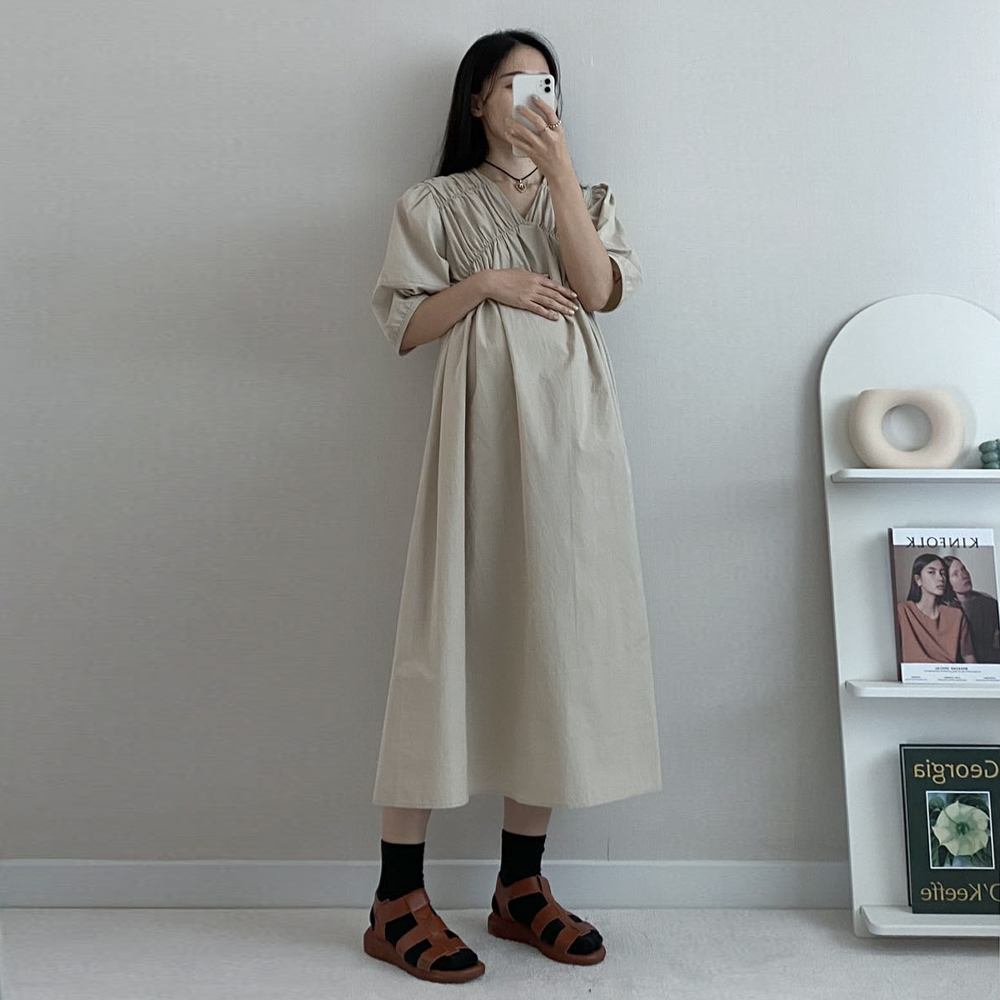 임산부 스모크 밴딩원피스 직장인임부복 하객룩 예쁜임부복 만삭
