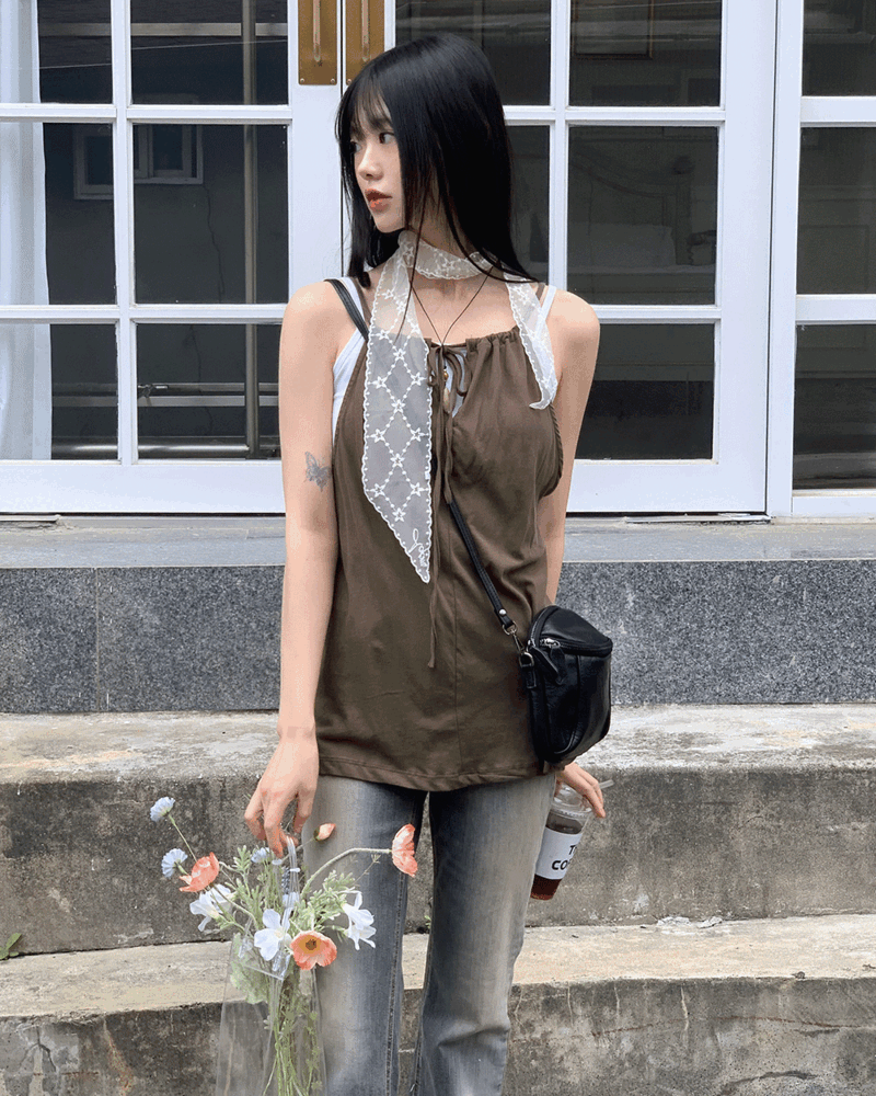 샌크 히피 투웨이 홀터 롱 끈 나시 슬리브리스
