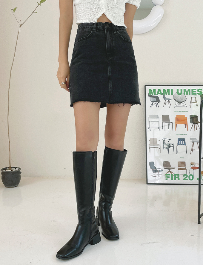 [Made] 베르디 흑청 스커트. SK0089 [자체제작/청치마/치마/H라인/A라인/미니스커트/4부/데님/빅사이즈/흑청치마/트임/슬릿]