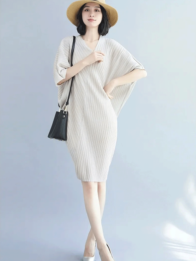 LL-1156 모던한 셔링 브이넥 원피스