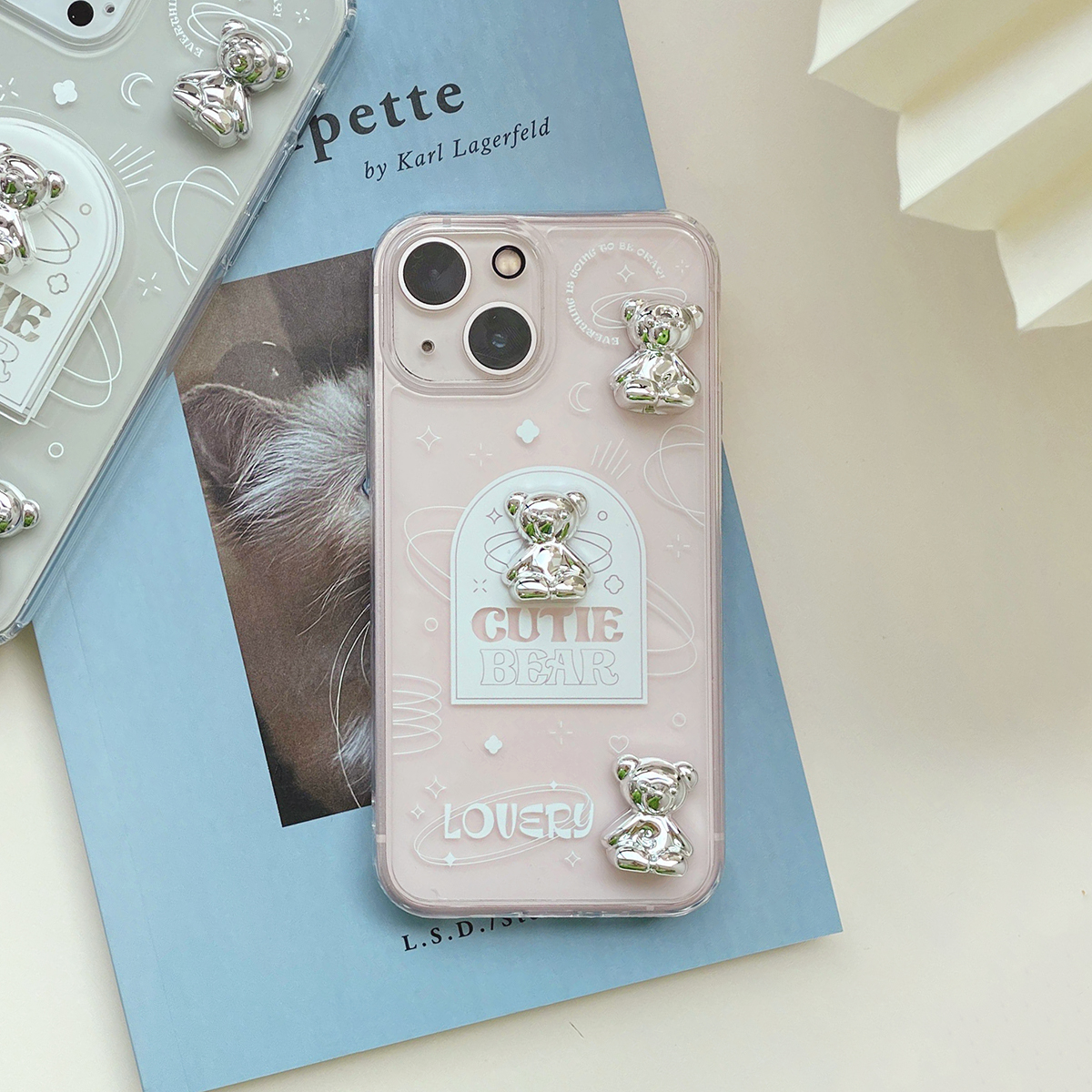 입체 실버 메탈 곰돌이 투명 폰케이스 커플 케이스 아이폰 데코덴 하드 폰케이스 카드수납 범퍼 클리어 S25 울트라 Z플립6 폴드6