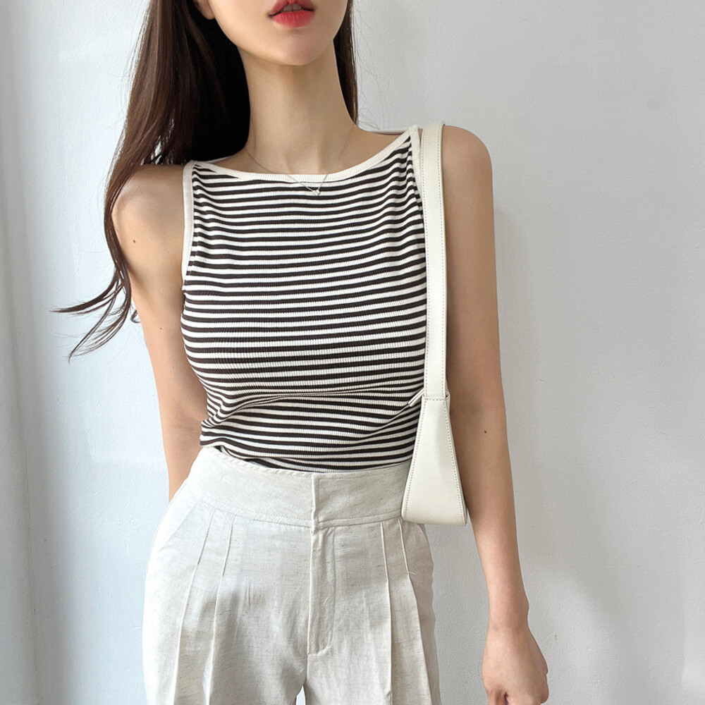 웨어러블 골지 스트라이프 입술넥 날씬해보이는 나시 티셔츠 6color