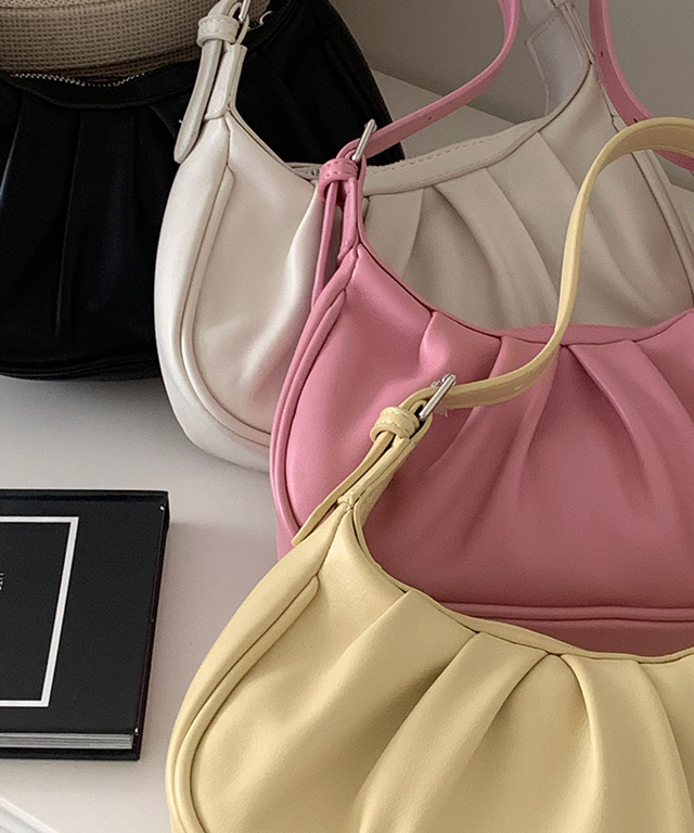 [가방끈2개/예쁜가방] 곱창 주름 셔링 미니백 4color 미니백 미니가방 여자가방 셔링 미니 작은가방 대학생코디 데일리가방 라운드가방 반달가방
