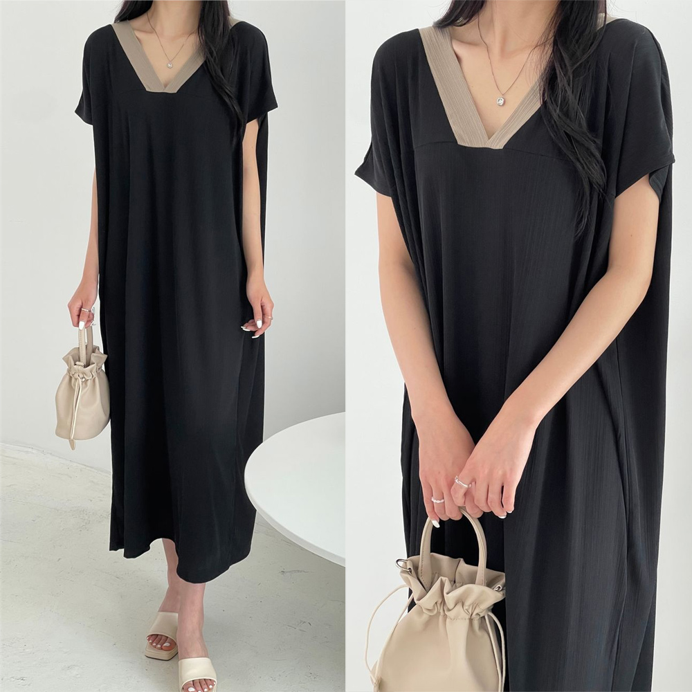 새로본 989아이콘브이O 빅사이즈롱 원피스OPS반팔 여성 미시 캐주얼