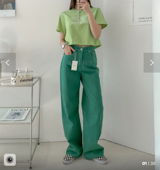 SS신상 361 롱와이드면팬츠 (그린 바지) - XL(88), L(77), M(66), S(55)