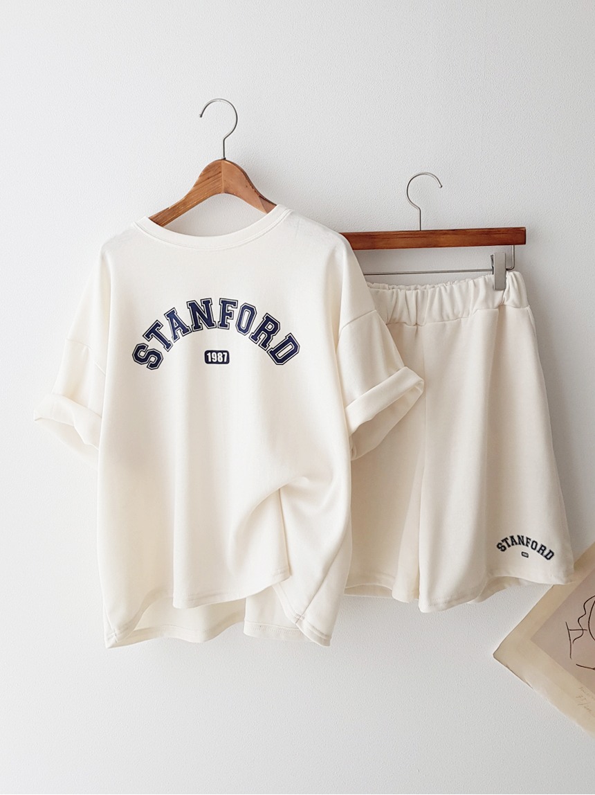 세트가격! STANFORD SET/ 가성비좋은 루즈핏 반팔 티셔츠 4부 반바지 여름 데일리 꾸안꾸 홈웨어 잠옷 썸머 트레이닝복 바캉스 추리닝 세트