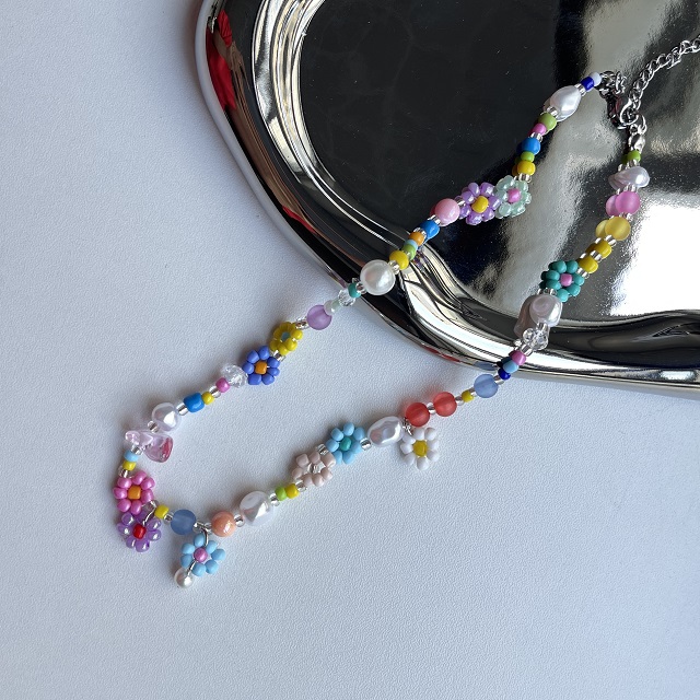플라워 꽃 비즈목걸이 볼드 진주 호마이카