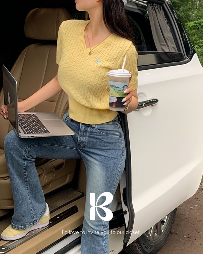 [당일출고][MADE/허리잘록]모어 꽈배기 브이넥 반팔니트