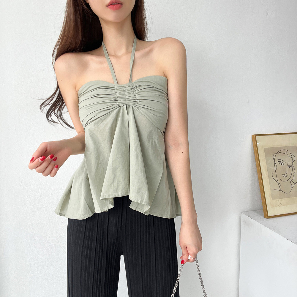 (당일출고) 투웨이 홀터넥 리본 스모크 셔링 탑 나시 블라우스 2color