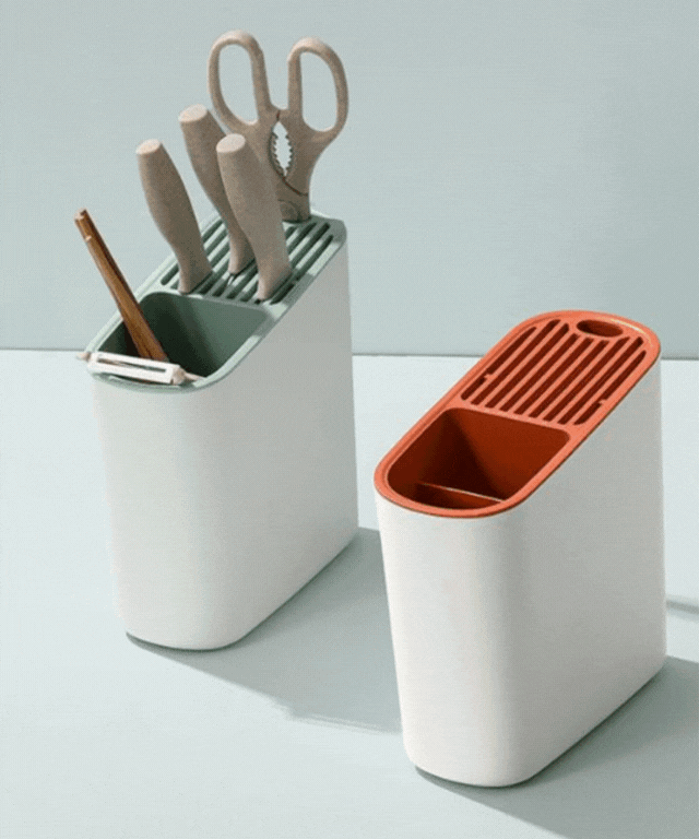 [💙깔끔한 주방 아이템 멀티 수납통🥄]물빠짐 칼꽂이 칼거치대 수저꽂이 주방 조리도구통 주방 멀티 수납통 주방 식기 도구 깔끔한 정리 감각적인 투톤 컬러 인테리어 주방 용품