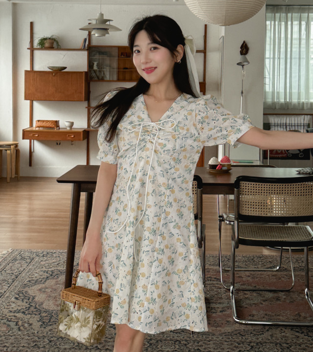 [무료/당일출고]봄 여름 썸머 플라워 잔꽃무늬 끈 반팔 퍼프 미니 원피스 휴가 물놀이 휴양지 여친 여행 바캉스룩