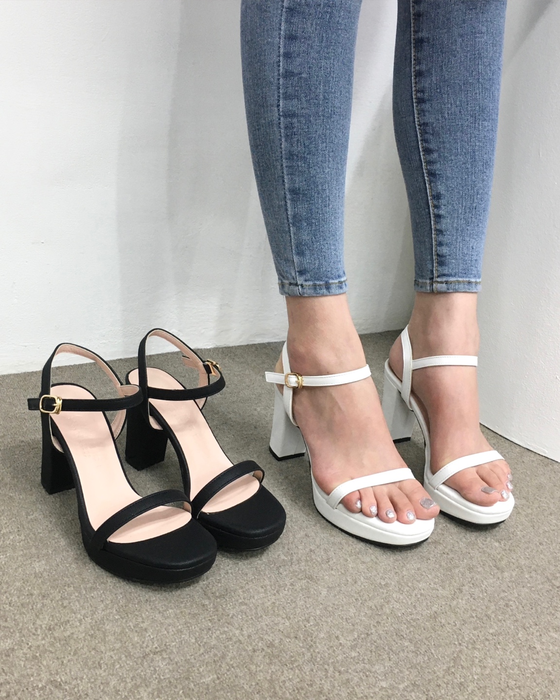 [당일배송/국산수제] 가보시 베이직 통굽 쿠션 스트랩 샌들힐 8cm