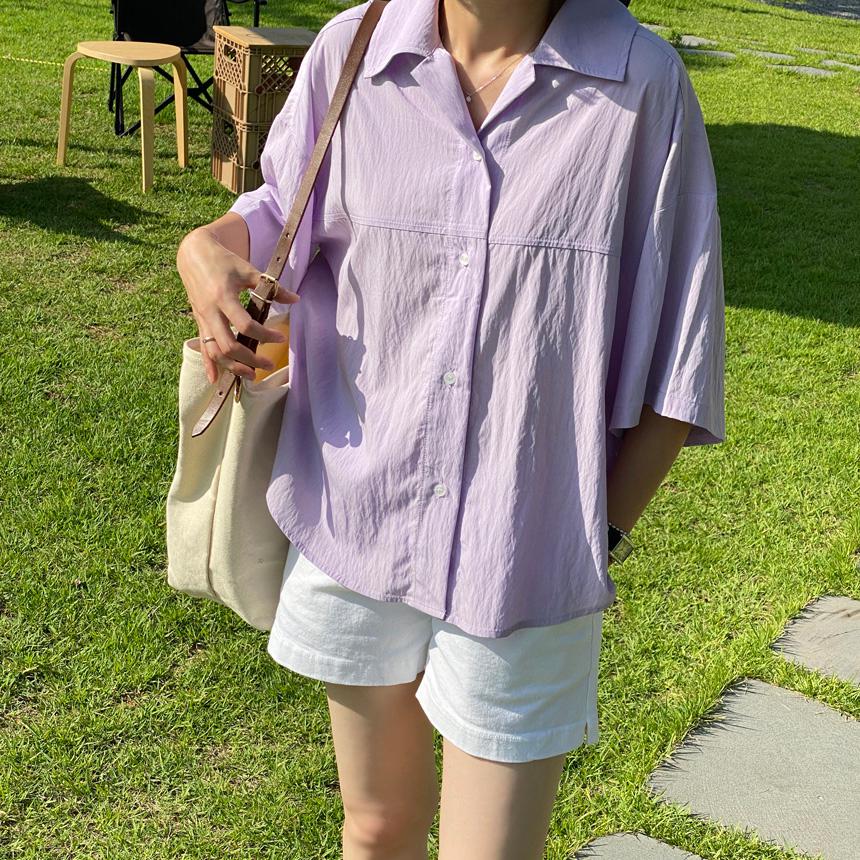 카라 여성셔츠 여름 남방 루즈핏 보라 블랙