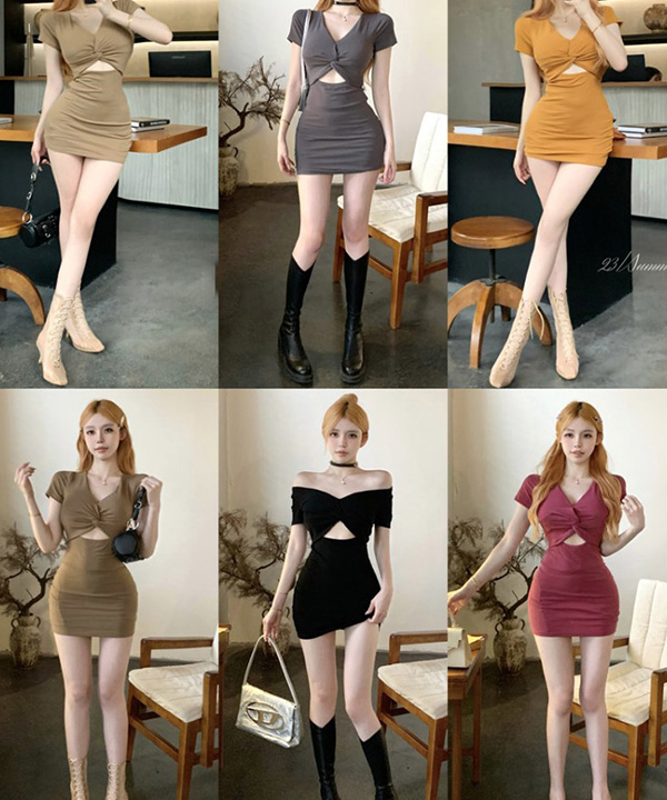 무료배송 썸타임 컷아웃 반팔원피스 (옐로우,인디레드,다크그레이,베이지,블랙)