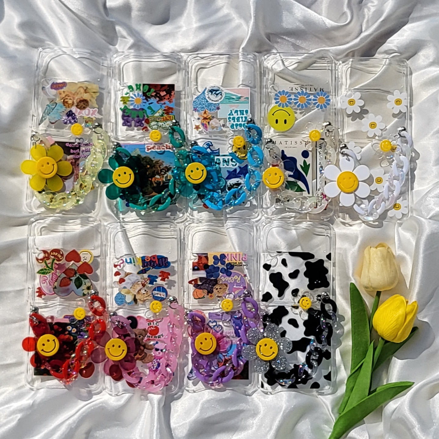 Z플립1.2.3.4 레트로 키치 스마일 플라워 체인 스트랩 폰케이스