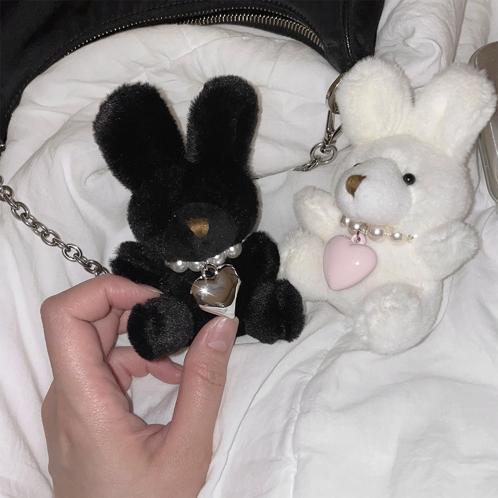 [1+1 할인] 하트💘 비쥬 블랙 버니 토끼 키링 래빗 가방고리 커플 키홀더 인형