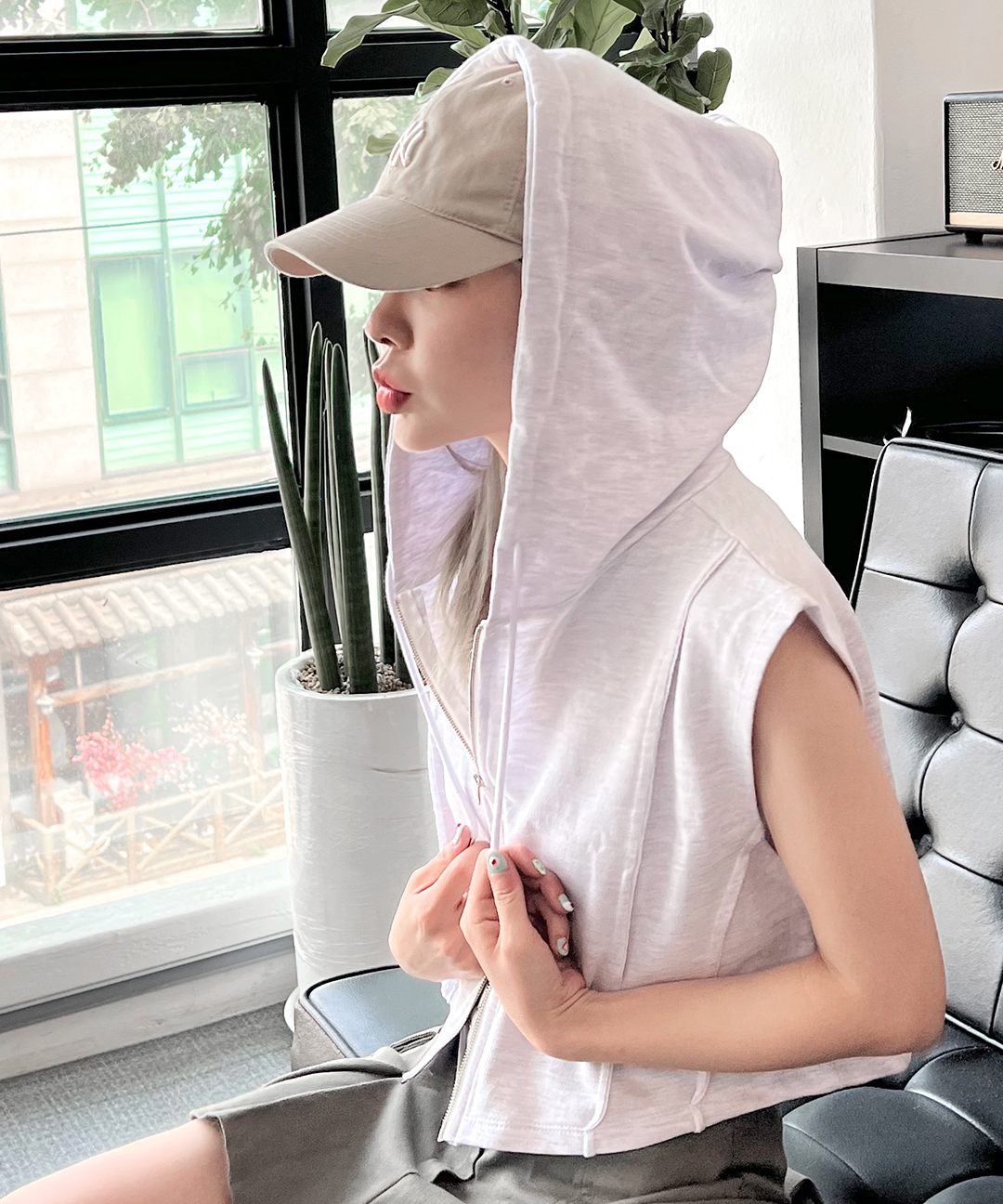나시후드 여름후드집업 후드 민소매 지퍼 크롭 탑 2way