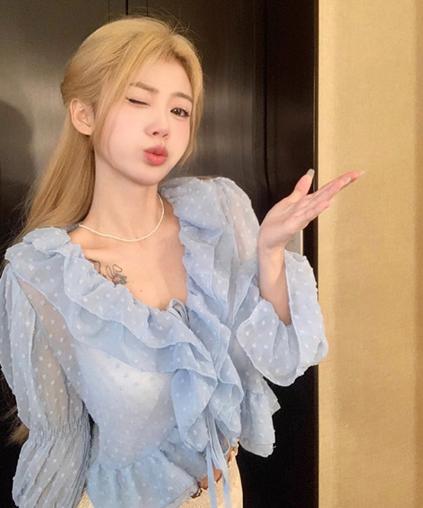 무료배송 츄버블프릴 블라우스 (블루,화이트)