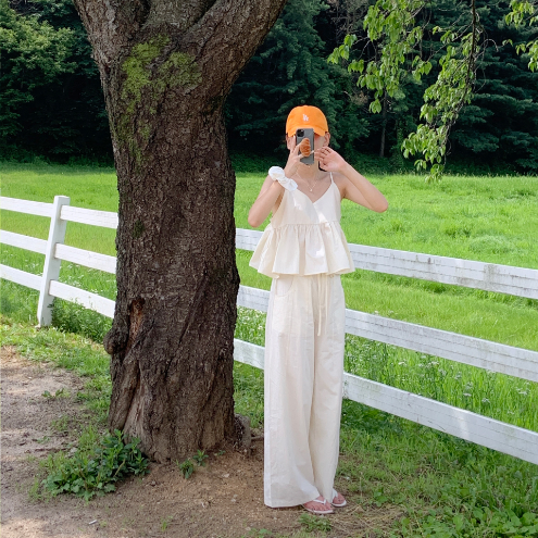 당일🚀 (Set🥨) 웬즈 나시 와이드 슬랙스 세트 휴양지 여름 셋업 / 민소매 휴가룩 비치룩 면바지