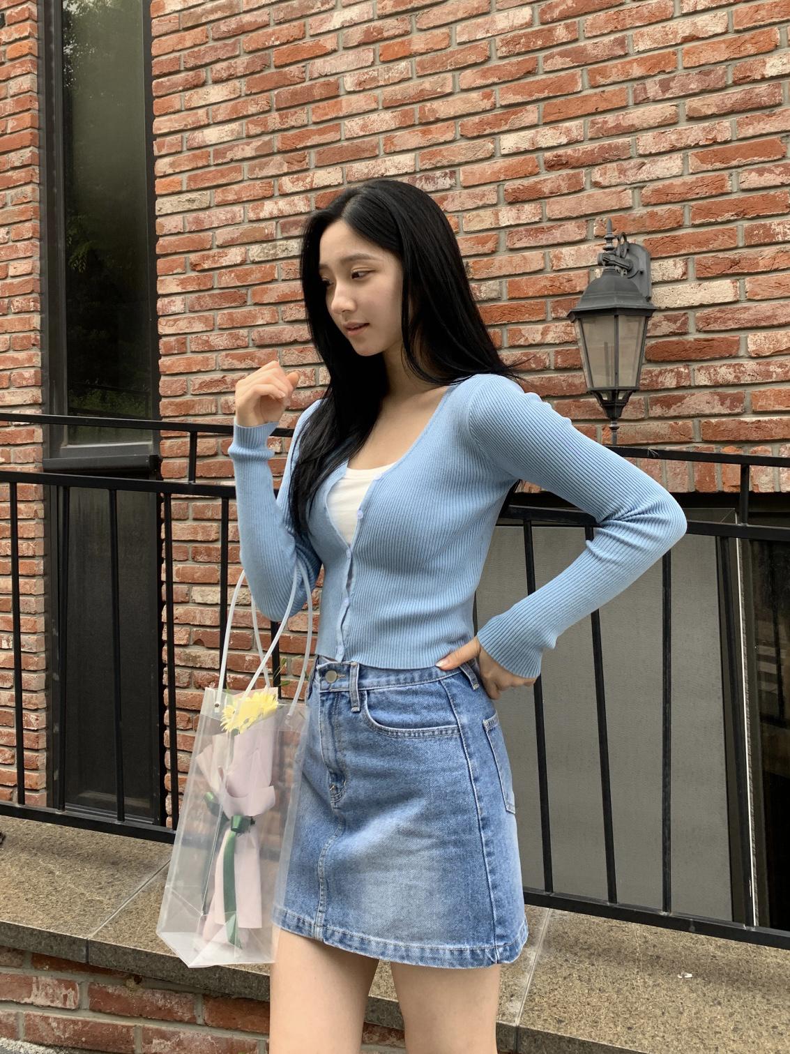여성 브이넥 골지 소라색 니트 크롭 가디건 3컬러 여름 가을 레이어드 슬림가디건