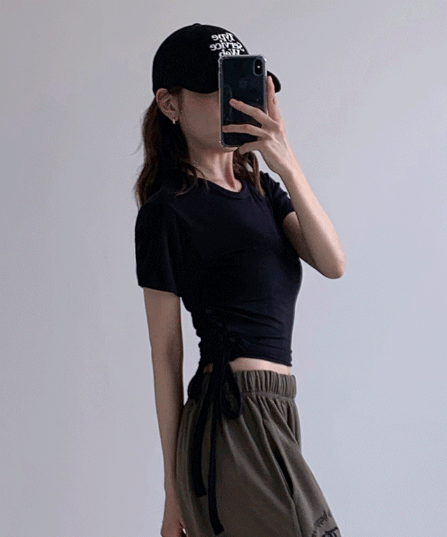 [핏보장/허리잘록] 르메인 슬릿 스트랩 반팔 티셔츠 - 2color