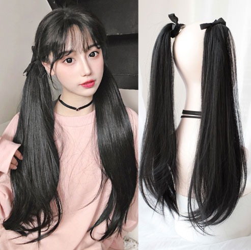 양갈래 포니테일 가발 코스프레 긴 머리 부분 가발