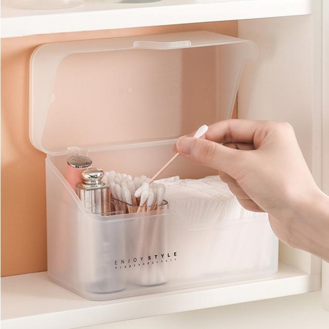 깔끔한 심플 다용도 수납 보관함 2컬러 - 뚜껑있는 소품 정리함 화장솜 면봉 케이스 데스크 화장대 정리대 화장품 수납 보관 소품 다용도정리함