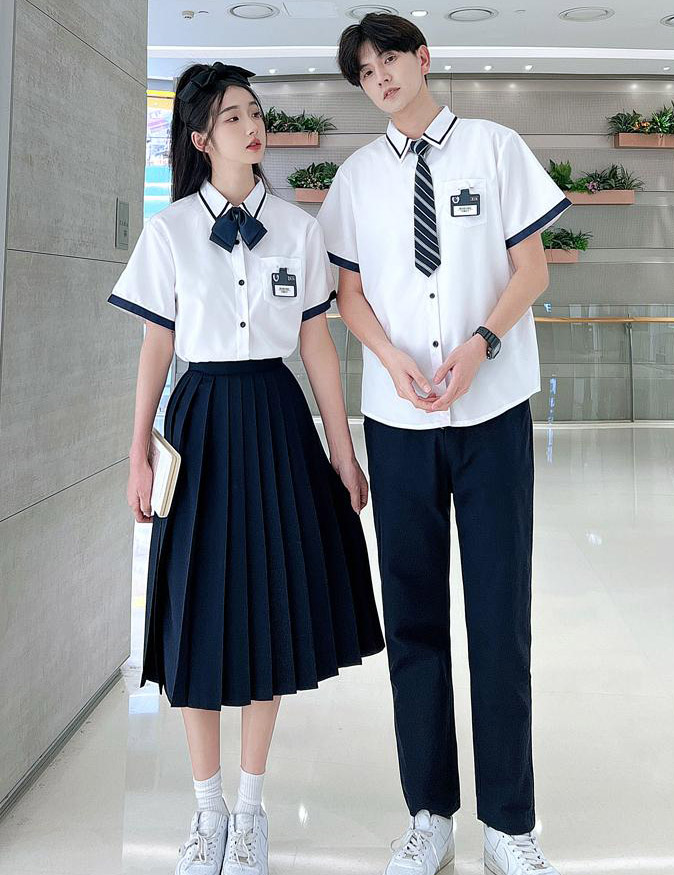 [여름휴가/바캉스/호캉스/수영장] 개강룩 코스프레룩 남성 교복 티셔츠/여성 반팔 교복+플리츠 롱 스커트 투피스 세트
