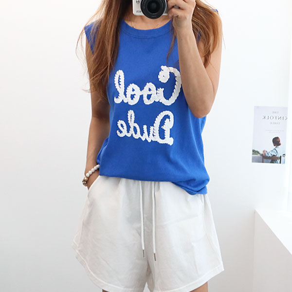 여성 쿨듀드 나시 여름 바캉스 비치 레터링 면 민소매 티 티셔츠